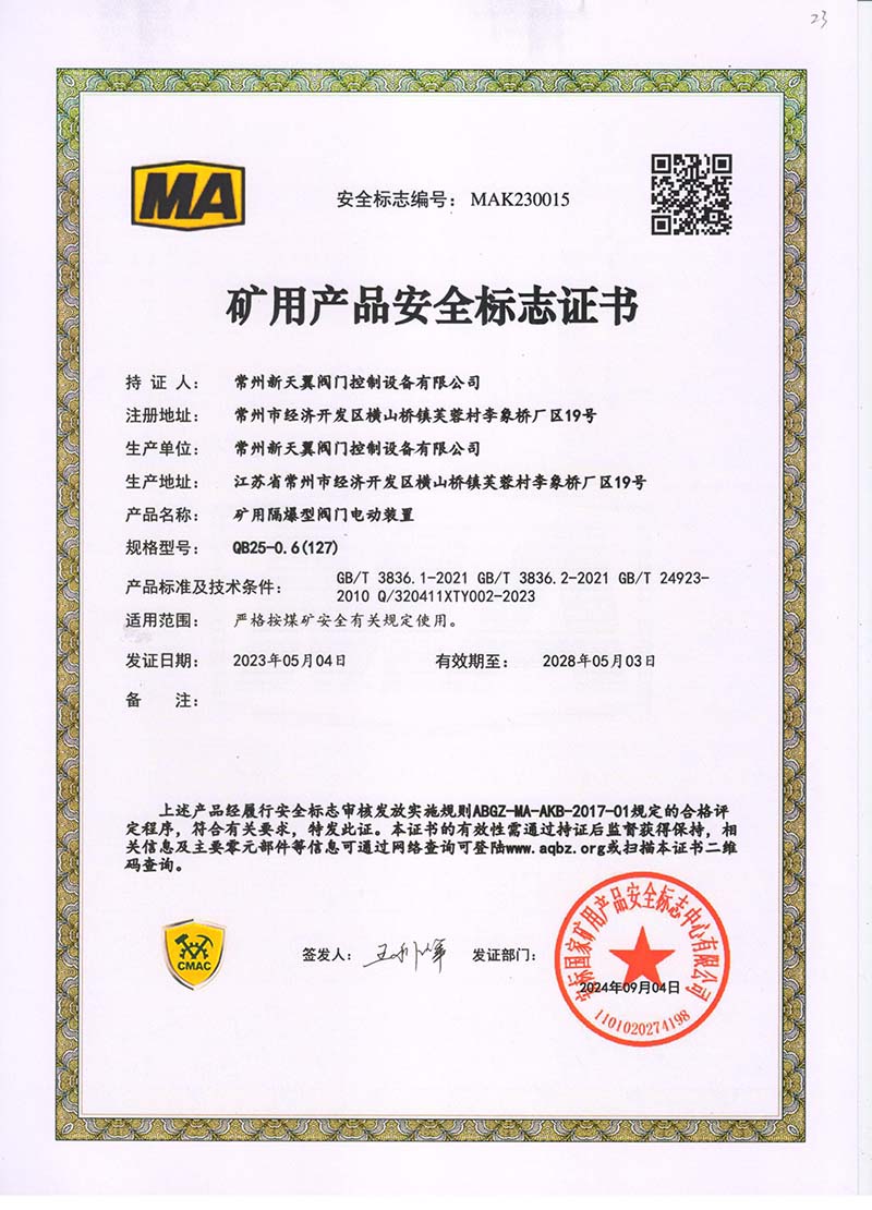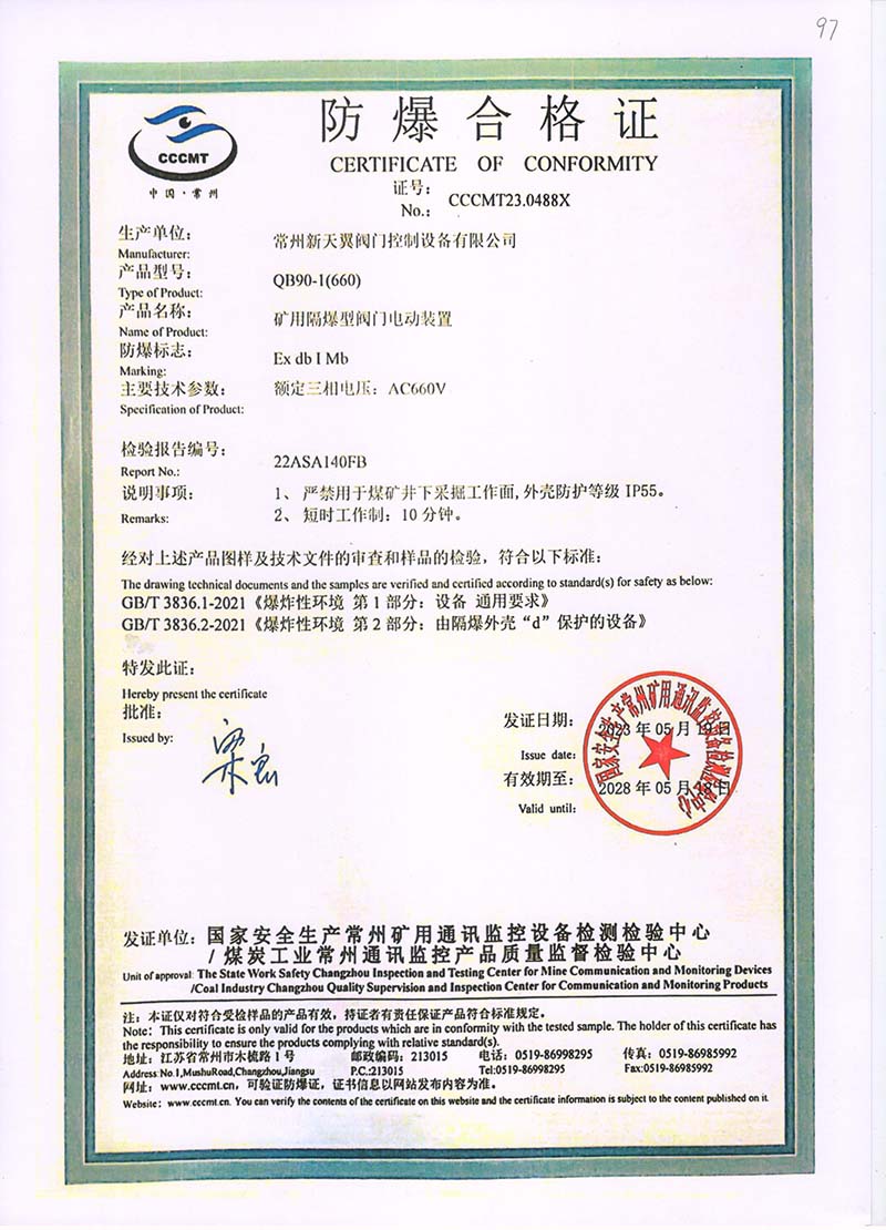 礦用隔爆QB127V中國國家強制性產品認證證書105.2