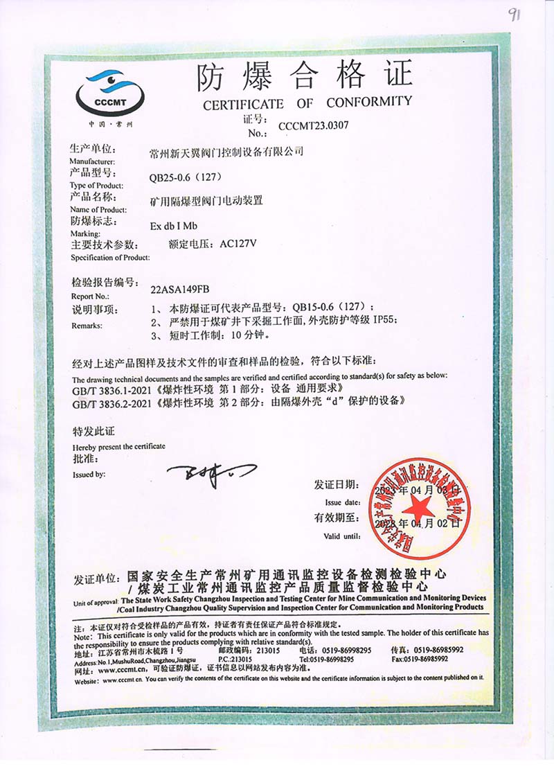 隔爆型QB QBZ QBT 220380中國國家強制性產品認證證書107.1