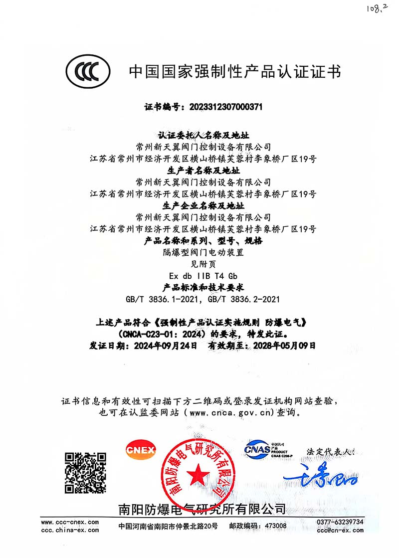 隔爆型DZB 中國國家強制性產品認證證書108.1